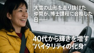 大雪の山形を走り抜けた仲間が、博士課程に合格した日──40代から輝きを増す“バイタリティの化身”**